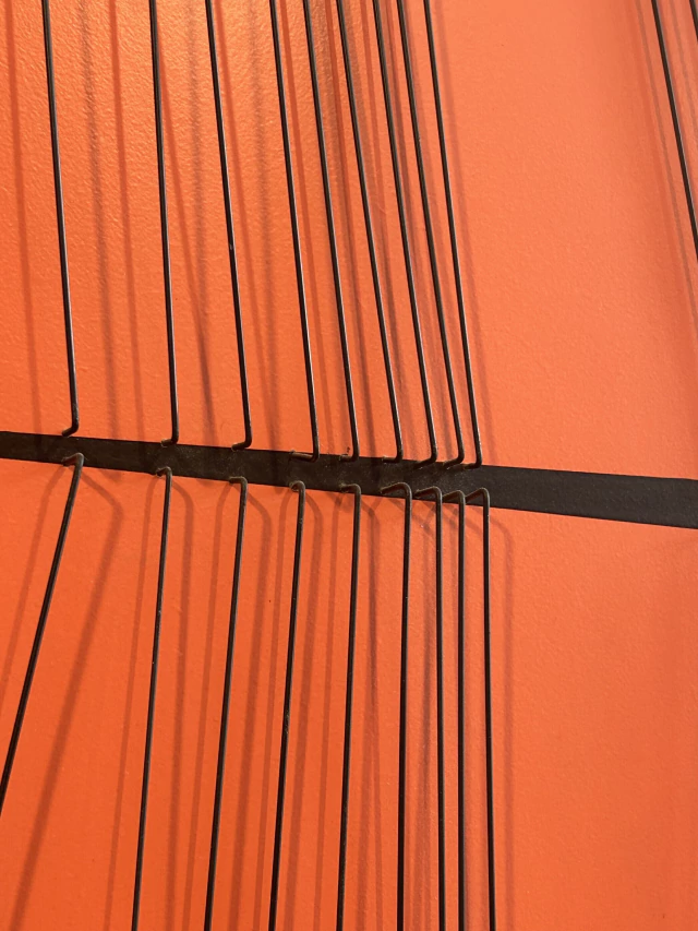 Composición pictórica geométrica y ensamblaje con varillas de metal.