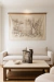 Dispositivo de soporte en madera natural, suspendido mediante cadenas finas metálicas, que permiten colgar la pieza de forma visible y sin vidrio, manteniendo la textura y el carácter matérico del soporte. 150 x 200 cm