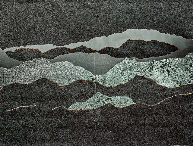 Collage con papel de lija, papel vegetal y esmalte sintético