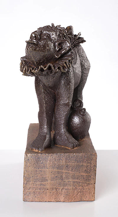 Modelado en pasta de gres con cubierta de engobe. Esmaltada a la sal en horno a leña con atmosfera reductora a 1280°C