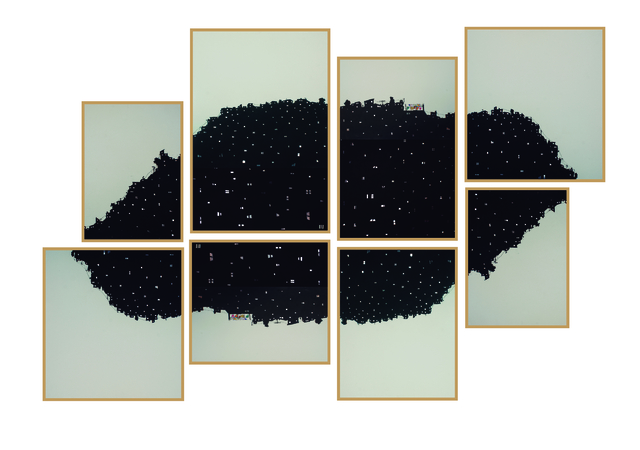 Carbon y tinta sobre papel papel calado y hojas de papel plateado