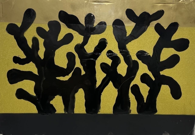 Tecnica mixta sobre foamboard, con marco dorado sin vidrio.